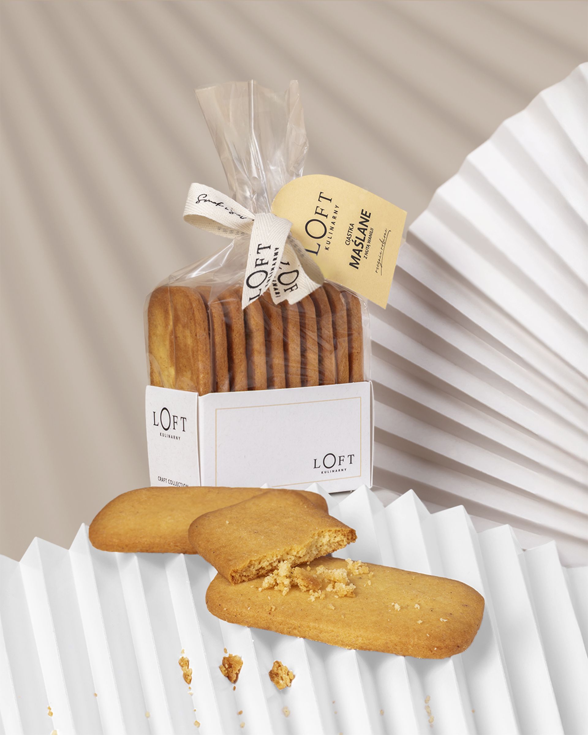 Ciastka maślane z nutą wanilii to kruche ciasteczka premium wypiekane na prawdziwym maśle z dodatkiem naturalnej pasty waniliowej. Mają delikatnie kruchą strukturę oraz wyważony, maślano-waniliowy profil smakowy, dzięki czemu idealnie sprawdzają się jako elegancki dodatek do kawy, herbaty oraz zestawów prezentowych.