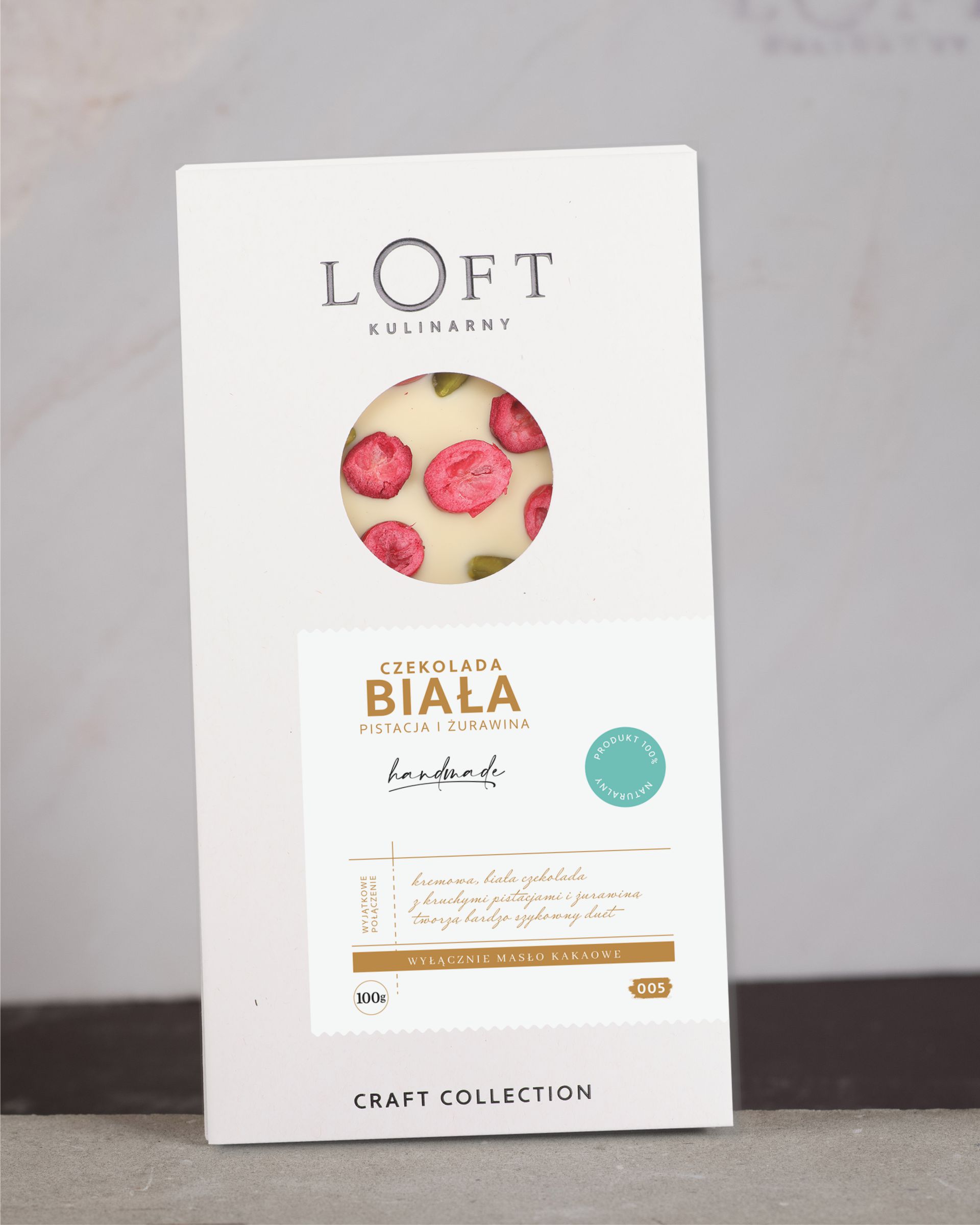 Każda tabliczka powstaje w małych partiach, z dbałością o detale – od temperowania czekolady, przez równomierne rozmieszczenie pistacji i żurawiny, po finalne wykończenie. Biała czekolada oparta na wysokiej jakości tłuszczu kakaowym (min. 32%) oraz starannie wyselekcjonowane dodatki dają efekt produktu premium, który wyróżnia się zarówno smakiem, jak i wyglądem.
