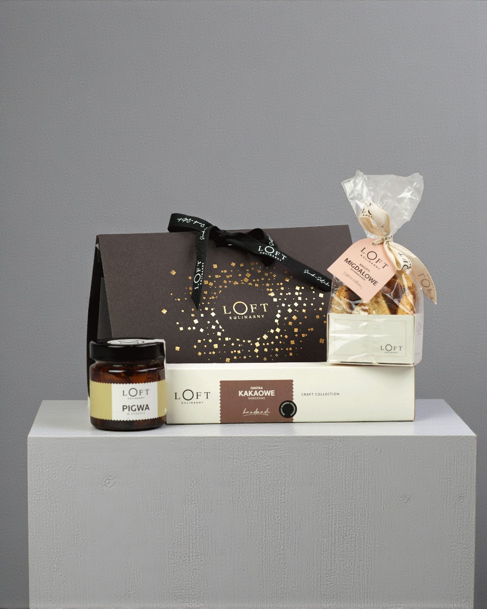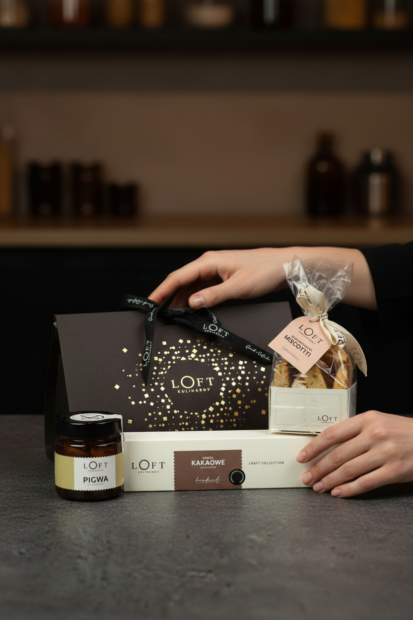 Ten zestaw prezentowy Loft Kulinarny powstał z myślą o świadomym obdarowywaniu — estetycznym, jakościowym i dopracowanym w każdym detalu. To prezent premium, który łączy rzemieślniczy smak z elegancką formą podania.