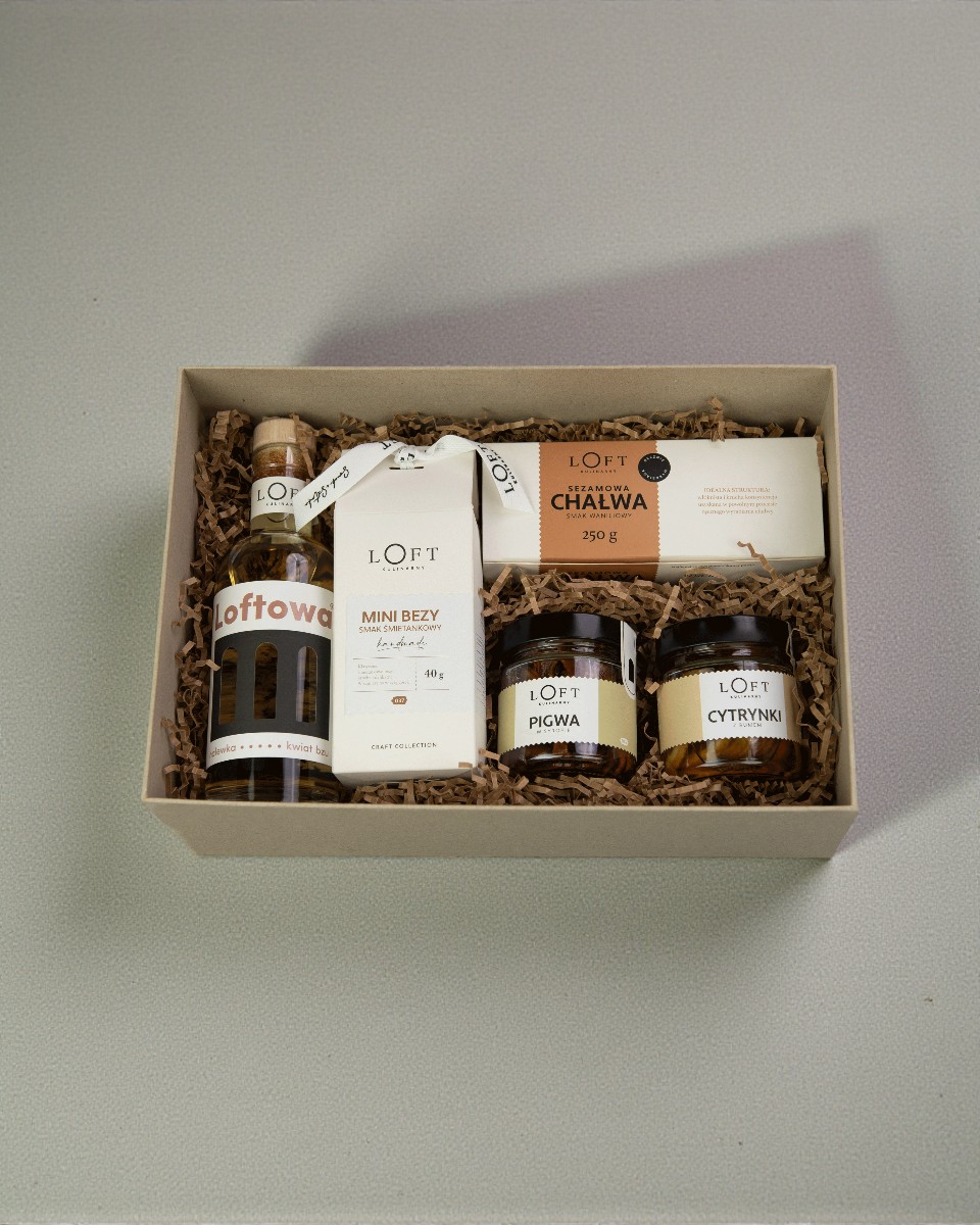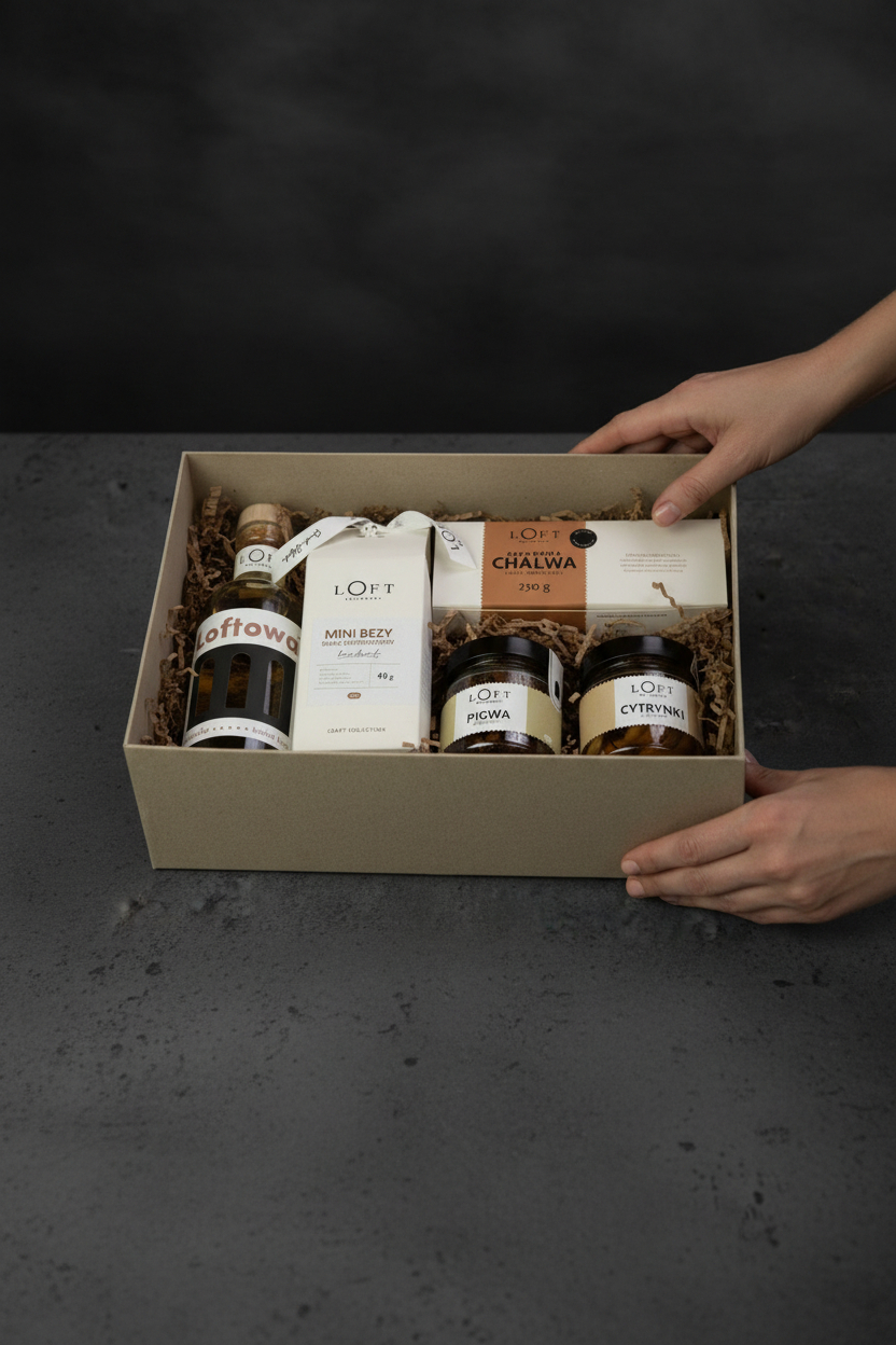 Ten zestaw prezentowy Loft Kulinarny powstał z myślą o świadomym obdarowywaniu — estetycznym, jakościowym i dopracowanym w każdym detalu. To prezent premium, który łączy rzemieślniczy smak z elegancką formą podania.