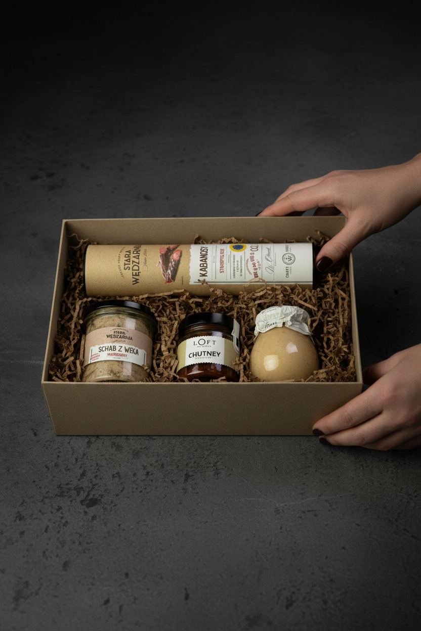 Ten zestaw prezentowy Loft Kulinarny powstał z myślą o świadomym obdarowywaniu — estetycznym, jakościowym i dopracowanym w każdym detalu. To prezent premium, który łączy rzemieślniczy smak z elegancką formą podania.
