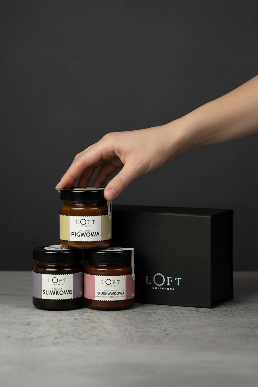Ten zestaw prezentowy Loft Kulinarny powstał z myślą o świadomym obdarowywaniu — estetycznym, jakościowym i dopracowanym w każdym detalu. To prezent premium, który łączy rzemieślniczy smak z elegancką formą podania.