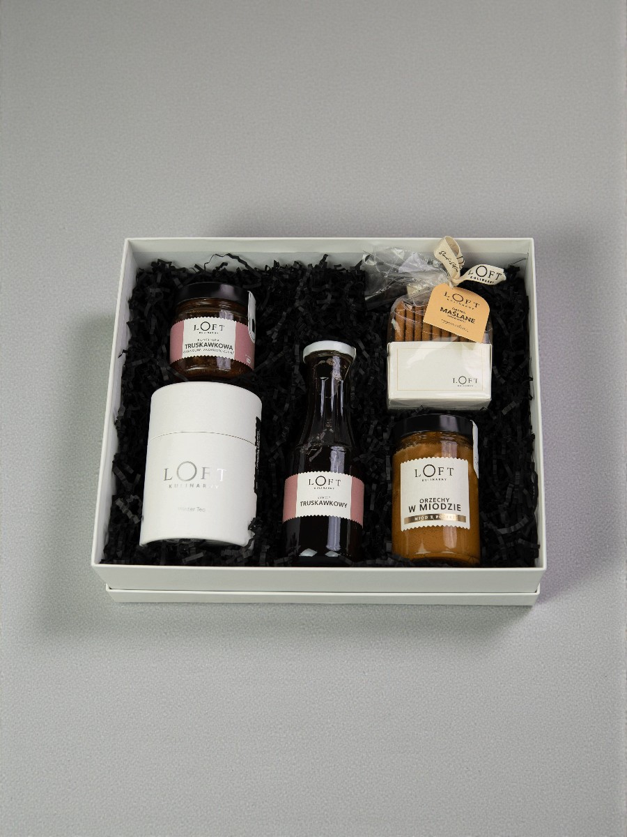 Ten zestaw prezentowy Loft Kulinarny powstał z myślą o świadomym obdarowywaniu — estetycznym, jakościowym i dopracowanym w każdym detalu. To prezent premium, który łączy rzemieślniczy smak z elegancką formą podania.