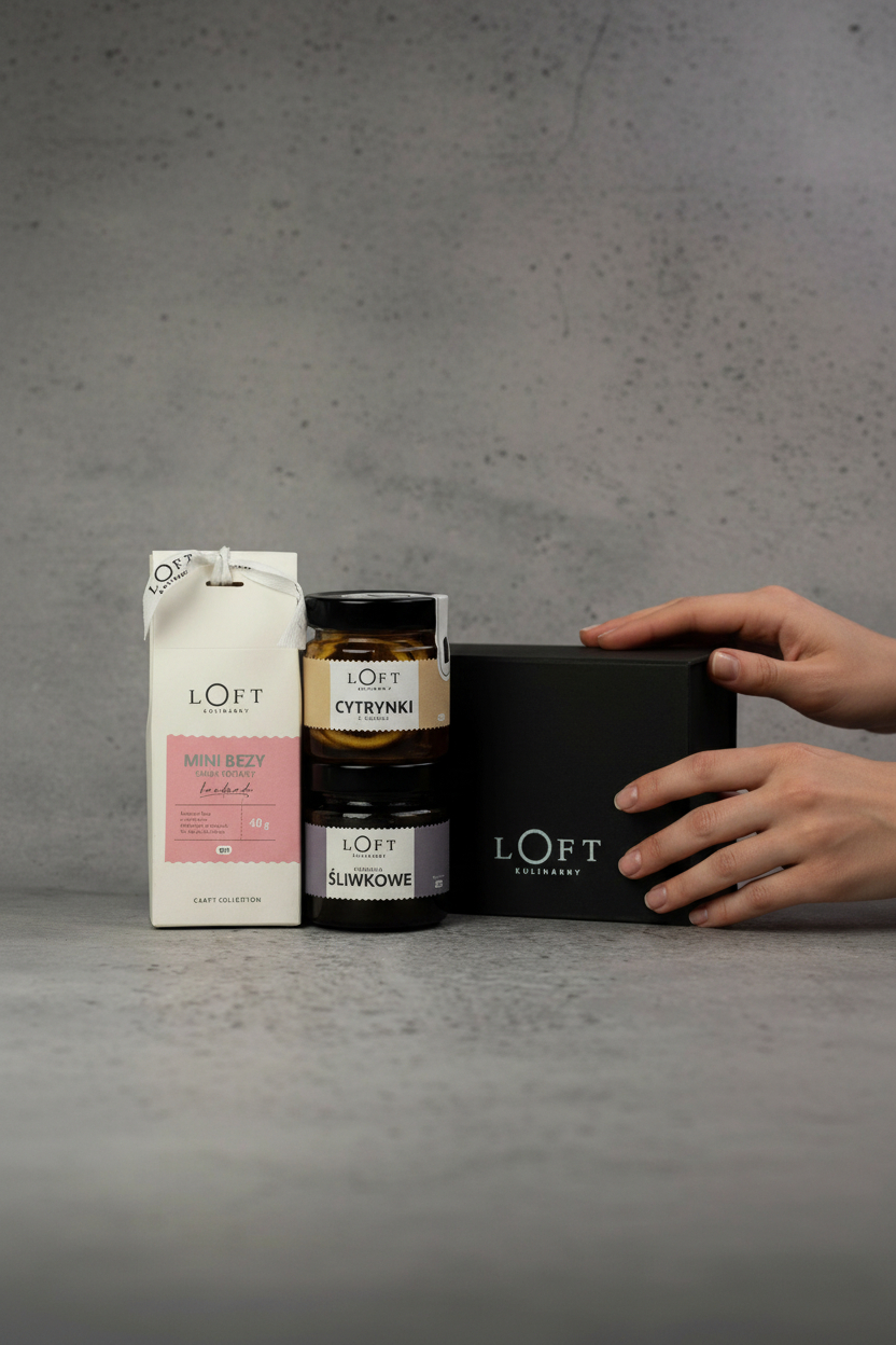 Ten zestaw prezentowy Loft Kulinarny powstał z myślą o świadomym obdarowywaniu — estetycznym, jakościowym i dopracowanym w każdym detalu. To prezent premium, który łączy rzemieślniczy smak z elegancką formą podania.