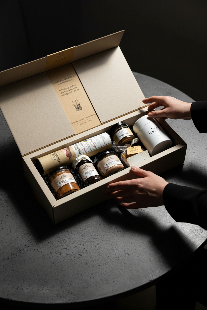 Ten zestaw prezentowy Loft Kulinarny powstał z myślą o świadomym obdarowywaniu — estetycznym, jakościowym i dopracowanym w każdym detalu. To prezent premium, który łączy rzemieślniczy smak z elegancką formą podania.