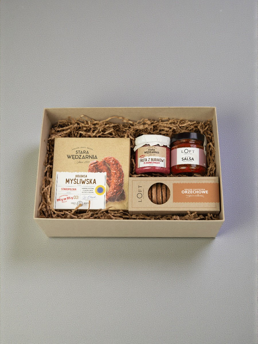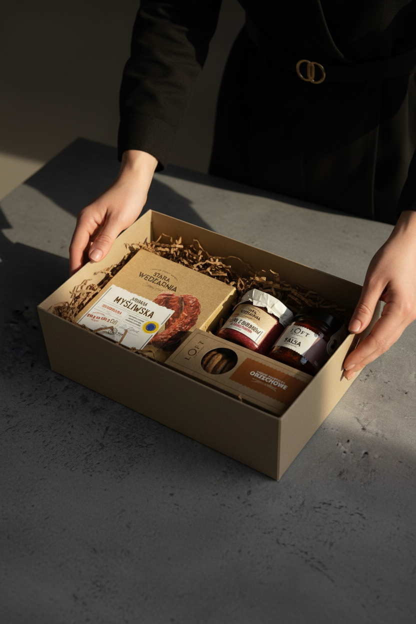 Ten zestaw prezentowy Loft Kulinarny powstał z myślą o świadomym obdarowywaniu — estetycznym, jakościowym i dopracowanym w każdym detalu. To prezent premium, który łączy rzemieślniczy smak z elegancką formą podania.