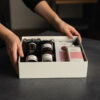Zestaw zapakowany jest w eleganckie pudełko prezentowe, gotowe do wręczenia.