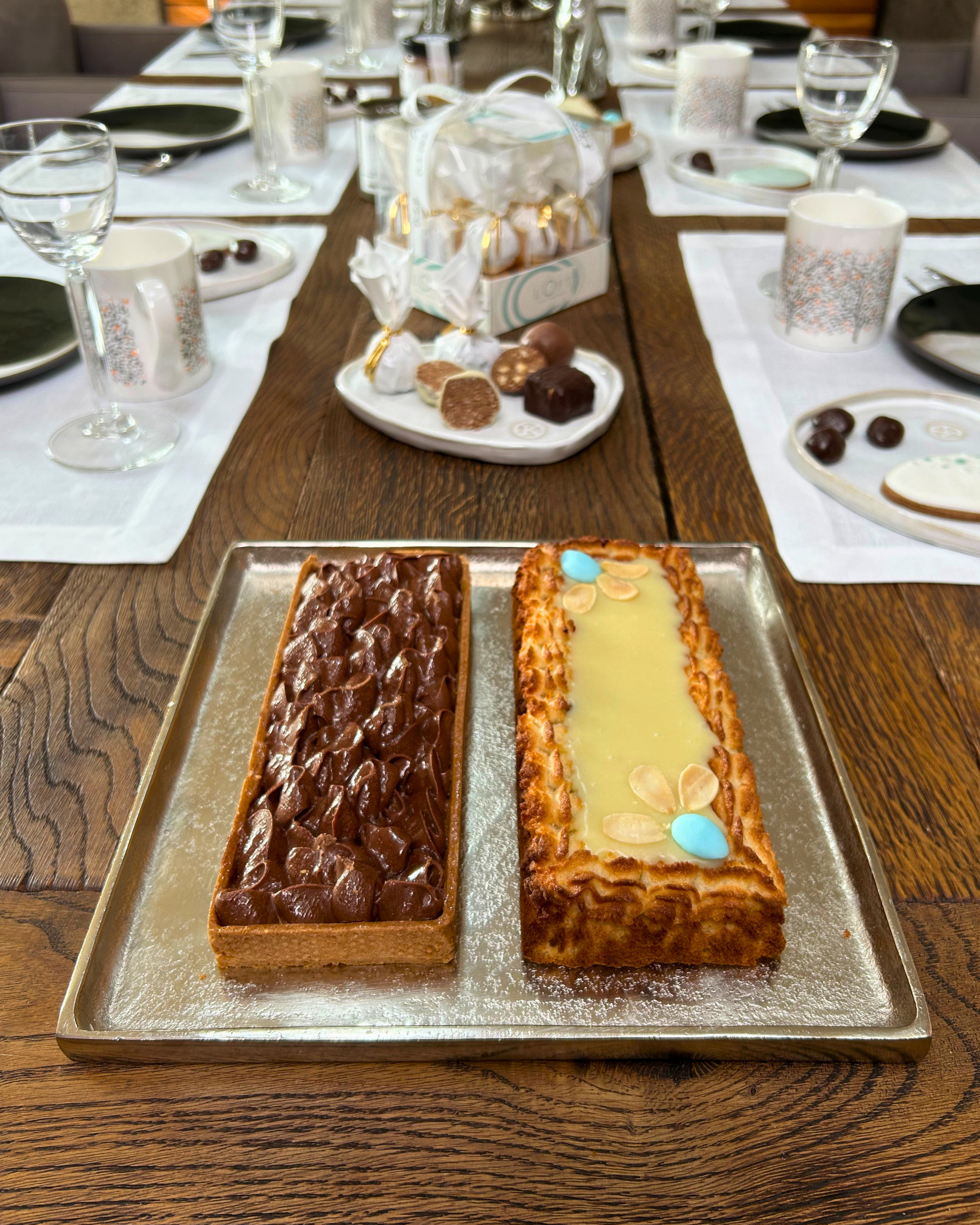 Całość zwieńczona została chrupiącymi czekoladowymi nibsami, które dodają kontrastu i intrygującej tekstury, podkreślając charakter wypieku. To mazurek o eleganckim, nieoczywistym smaku – idealny wybór dla miłośników słodyczy z nutą goryczki.