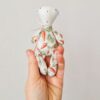 Dekoracja miś ręcznie szyty w piękny, marchewkowy wzór. Zapakowany w bawełniany woreczek będzie pięknym prezentem.