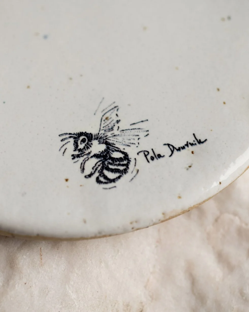 Czasem jeden drobny przedmiot potrafi nadać stołowi osobisty ton – taki, który mówi o gustach, wartościach i wrażliwości na detal. Ta podkładka pod kubek powstała jako element sztuki użytkowej: prosta w funkcji, wyjątkowa w oprawie. Motyw pszczoły zaprojektowany przez Polę Dwurnik wprowadza do wnętrza subtelną narrację – o naturze, uważności i pięknie, które nie potrzebuje nadmiaru.