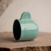 Ręcznie wykonany kubek świątreczny ceramiczny w zielonym kolorze. Kubek idealny do kawy, herbaty lub innych ciepłych naparów. Posiada bardzo oryginalne ucho, które wyróżni Twoją zastawę stołową.