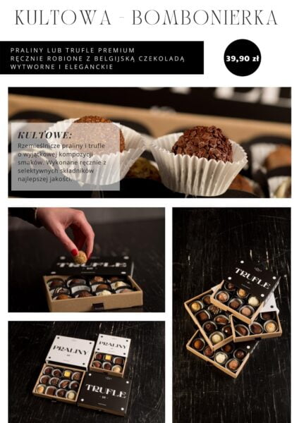 PRALINY LUB TRUFLE PREMIUM RĘCZNIE ROBIONE Z BELGIJSKĄ CZEKOLADĄ WYTWORNE I ELEGANCKIE.