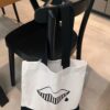 Torba biało-czarna, wykonana z grubej, odpornej bawełny.