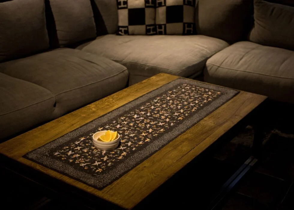 - Bieżnik „Mój mały raj” wykonany z certyfikowanej organicznej bawełny o wyjątkowym splocie panama o gramaturze 230g.