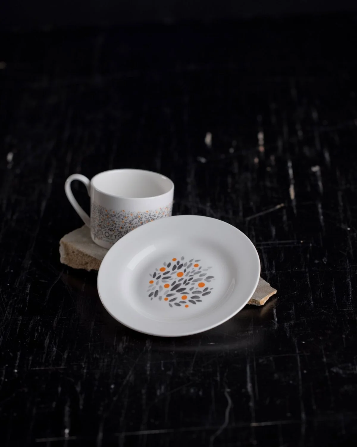 - Porcelanowa filiżanka ze spodeczkiem wykonana w Fabryce Porcelany Ćmielów 210ml
