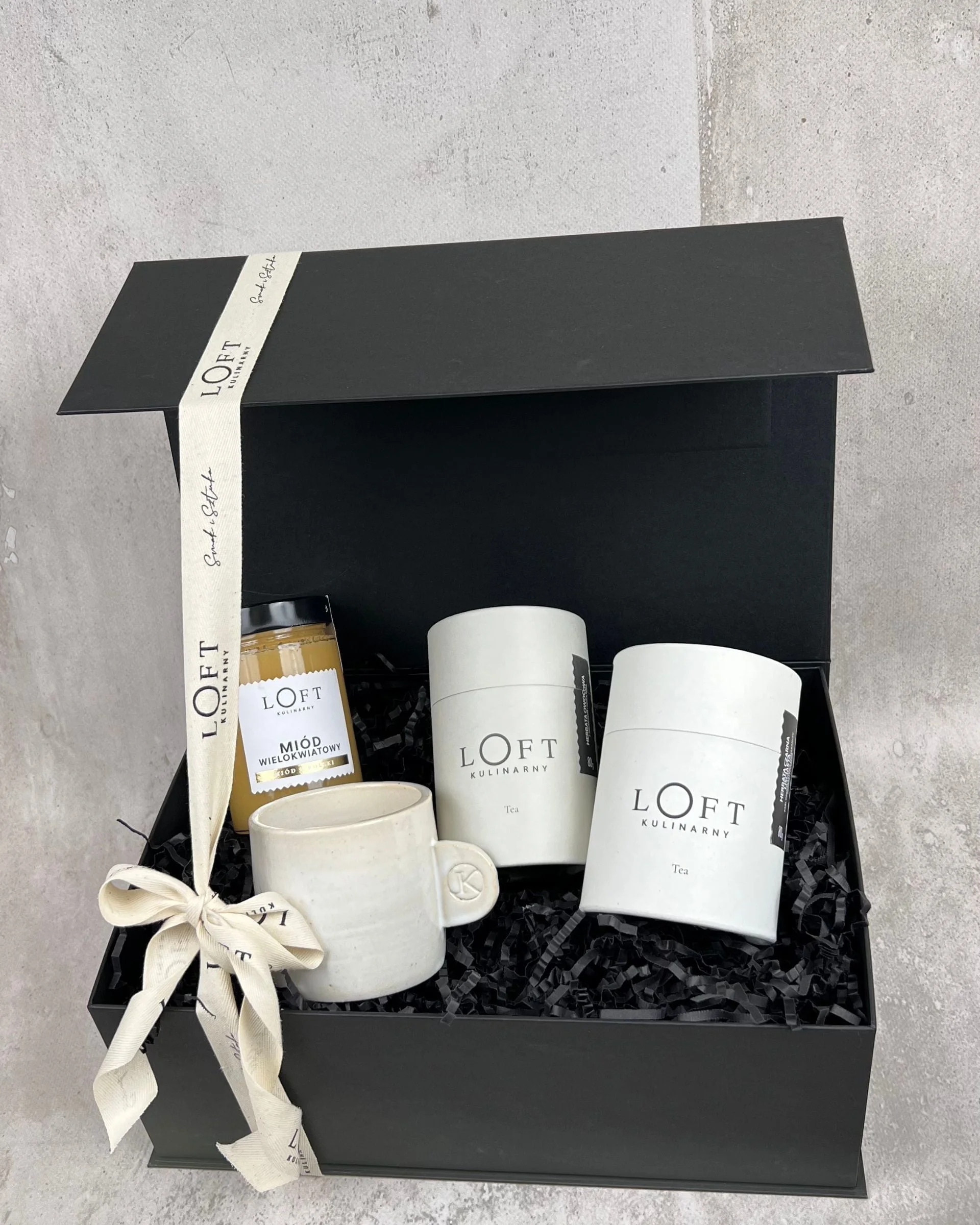 Zestaw zapakowany w eleganckie, czarne pudełko zamykane na magnes.