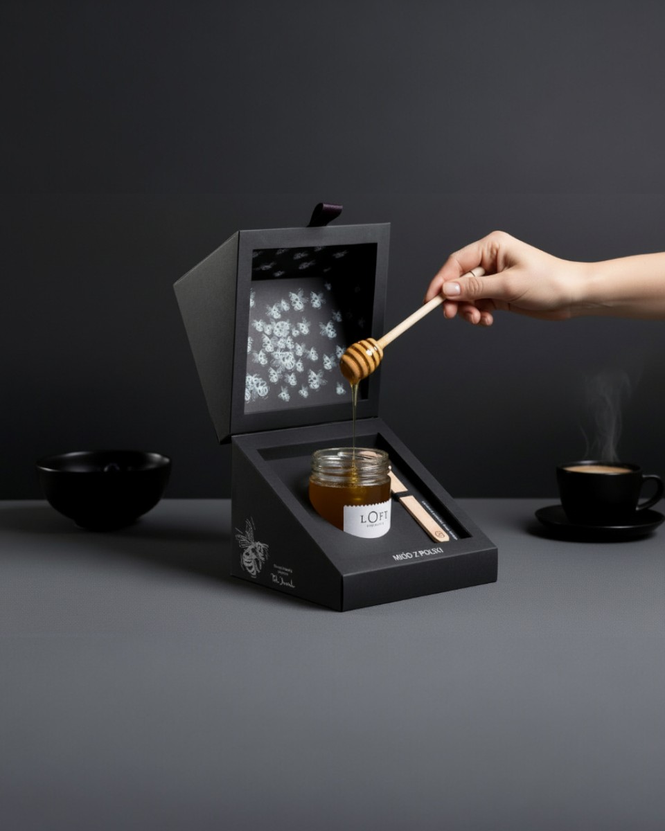 W tym zestawie ważna jest spójność: jakościowy miód, praktyczny detal i opakowanie, które opowiada historię. Zestaw podkreśla wartość „każdej kropli” — bez przesady, ale z wyczuciem. To propozycja dla osób, które lubią rzeczy dopracowane i chcą wręczać prezenty z sensem: użytkowe, estetyczne i gotowe do użycia od razu po rozpakowaniu.