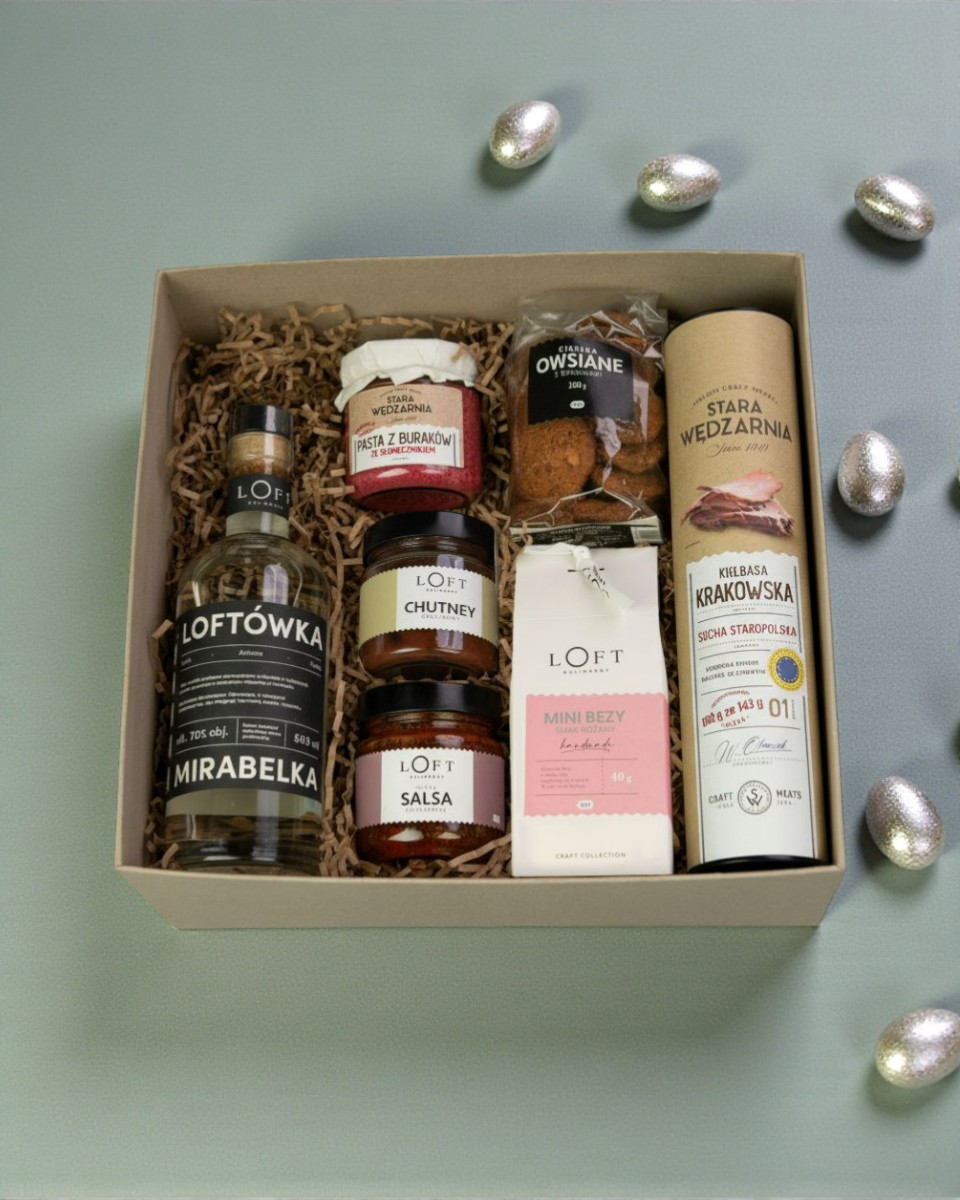 Ten zestaw prezentowy Loft Kulinarny powstał z myślą o świadomym obdarowywaniu – estetycznym, jakościowym i dopracowanym w każdym detalu. To wielkanocny prezent premium, który łączy rzemieślnicze smaki, świąteczny charakter i elegancką formę podania.
