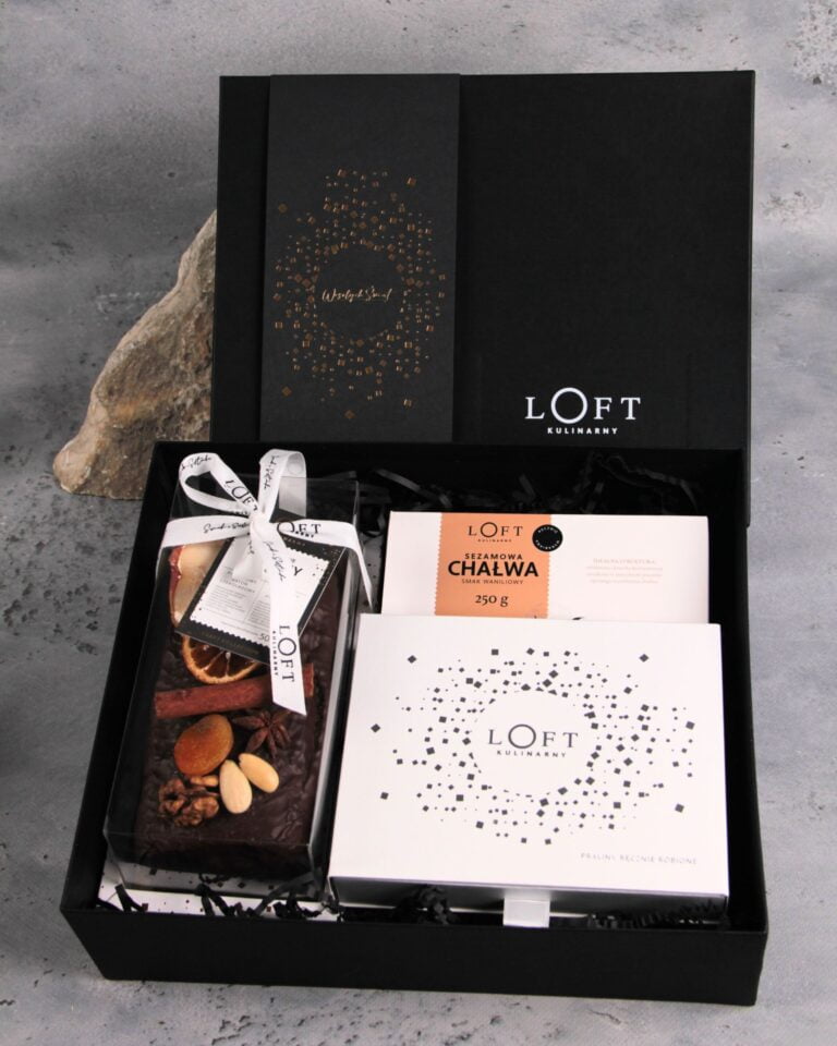 Zestawy prezentowe Loft Kulinarny to gotowe, starannie dobrane kosze prezentowe z najlepszymi delikatesowymi wyrobami rzemieślniczymi i przedmiotami sztuki użytkowej do kuchni i jadalni najzdolniejszych polskich artystów. Idealne na prezent dla mamy, żony, dziewczyny, szefa, klienta, najlepszej pracownicy.