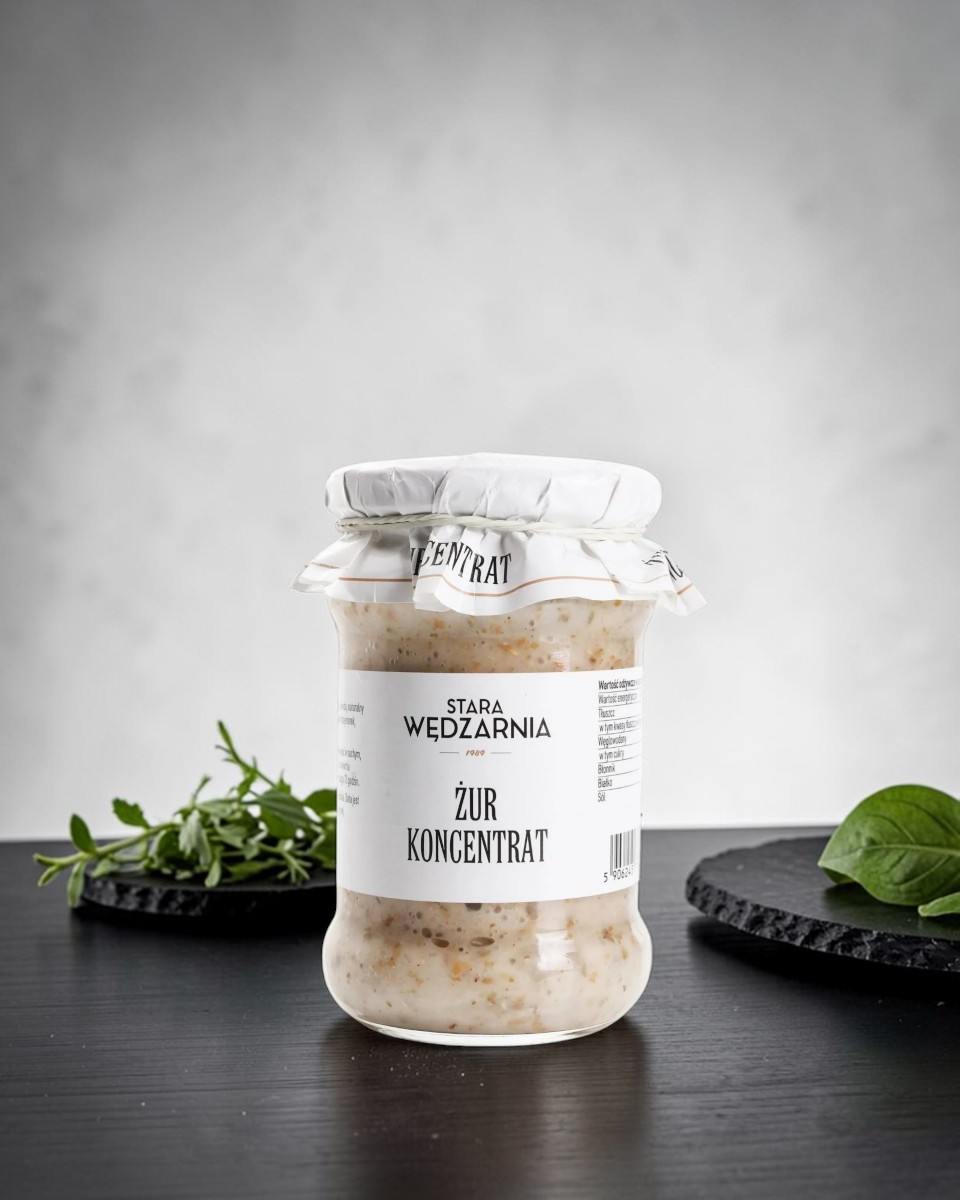 Żur polski Stara Wędzarnia jest wyjątkowy, bo jego smak buduje fermentacja: lekka kwasowość, zbożowa głębia i charakterystyczny aromat. To sprawia, że zupa na bazie żuru jest sycąca, ale nie ciężka. Możesz przygotować go w wersji klasycznej: z białą kiełbasą i jajkiem, z majerankiem i pieprzem. Możesz też zrobić wersję lżejszą, warzywną — z podsmażoną cebulką, ziemniakami i ziołami.